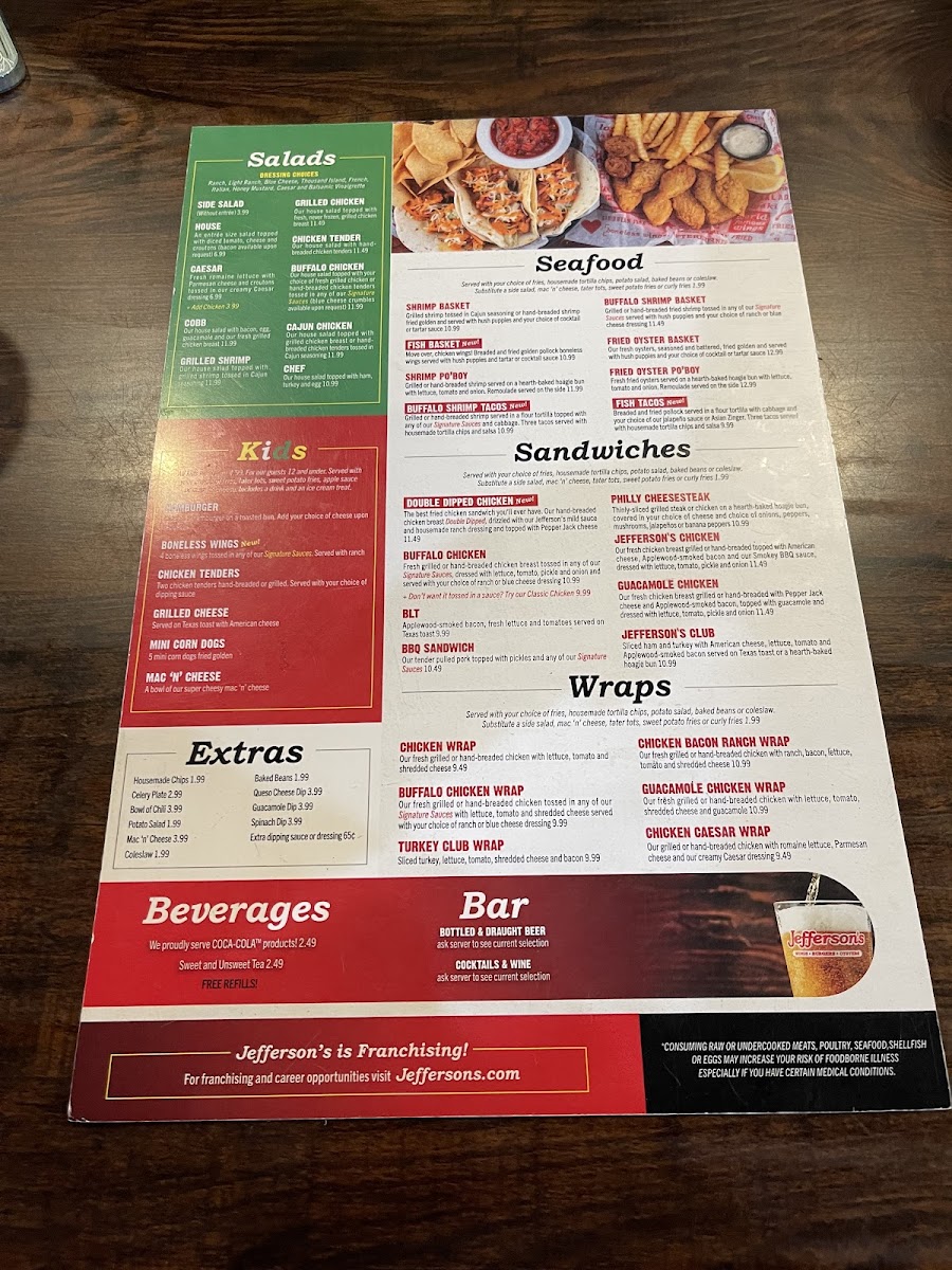 Introducing Jefferson's Rockmart, a vibrant eatery located at 754 Cartersville Rd, Rockmart, GA. With a reputation for exceptional service and mouthwatering dishes, this restaurant is a must-visit. The menu is a delightful blend of classic comfort foods, including juicy burgers, flavorful wings with innovative sauces, and decadent appetizers like cheese fries and fried jalapeños.